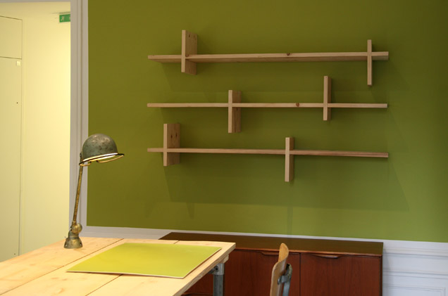Etagères suspendues en sapin.