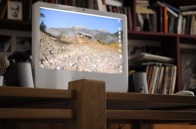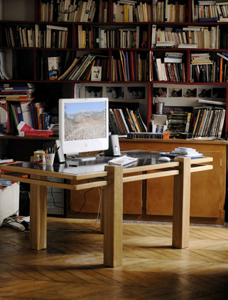 Pour un réalisateur parisien. Piètement et encadrement en chêne massif, plateau laqué, couleur à la demande.